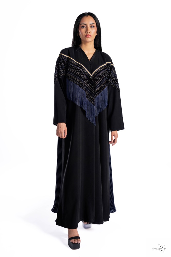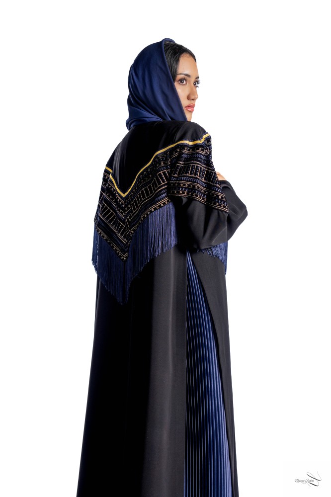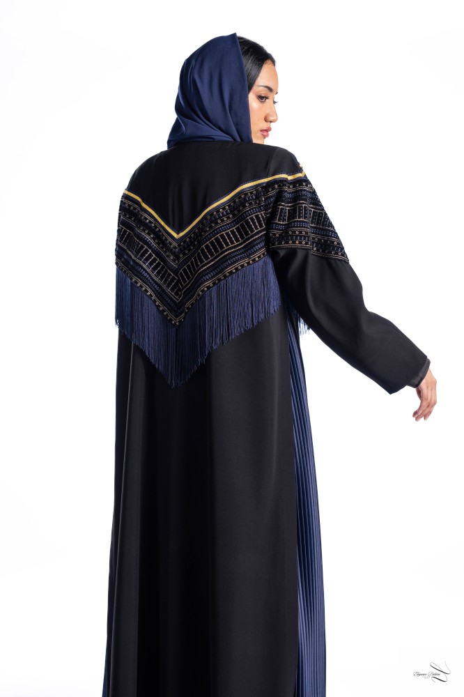 سراميك واقف مطرزة بكلفة على الصدر مع كسرات جانبية كحلي