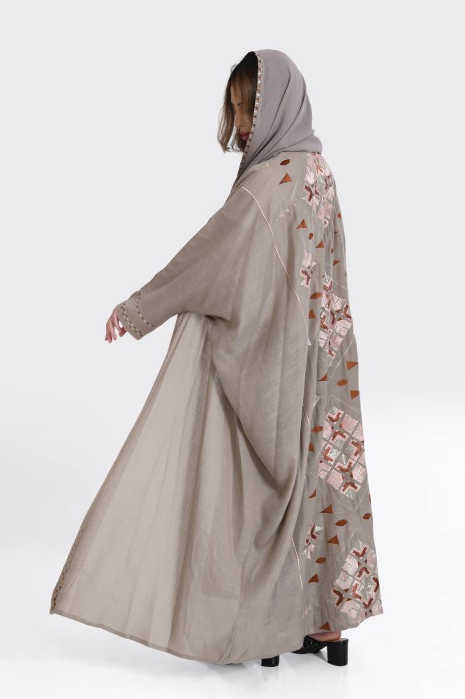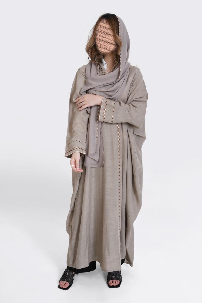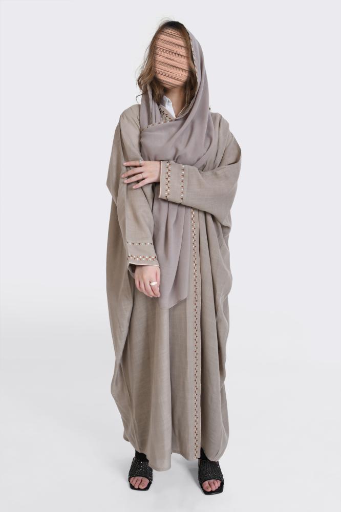 عباية لينن مع تطرير خاص وفاخر بالونين