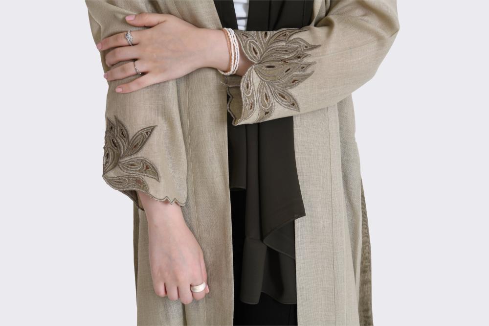 عباية صيفية لينن مع تطريز خاص مدموج مع قماش شانتون