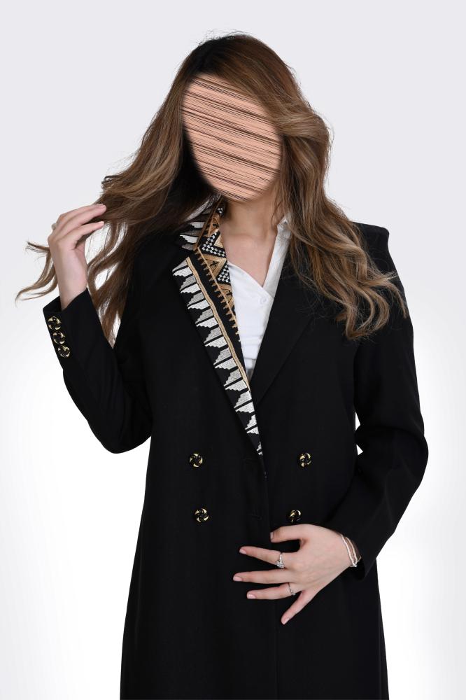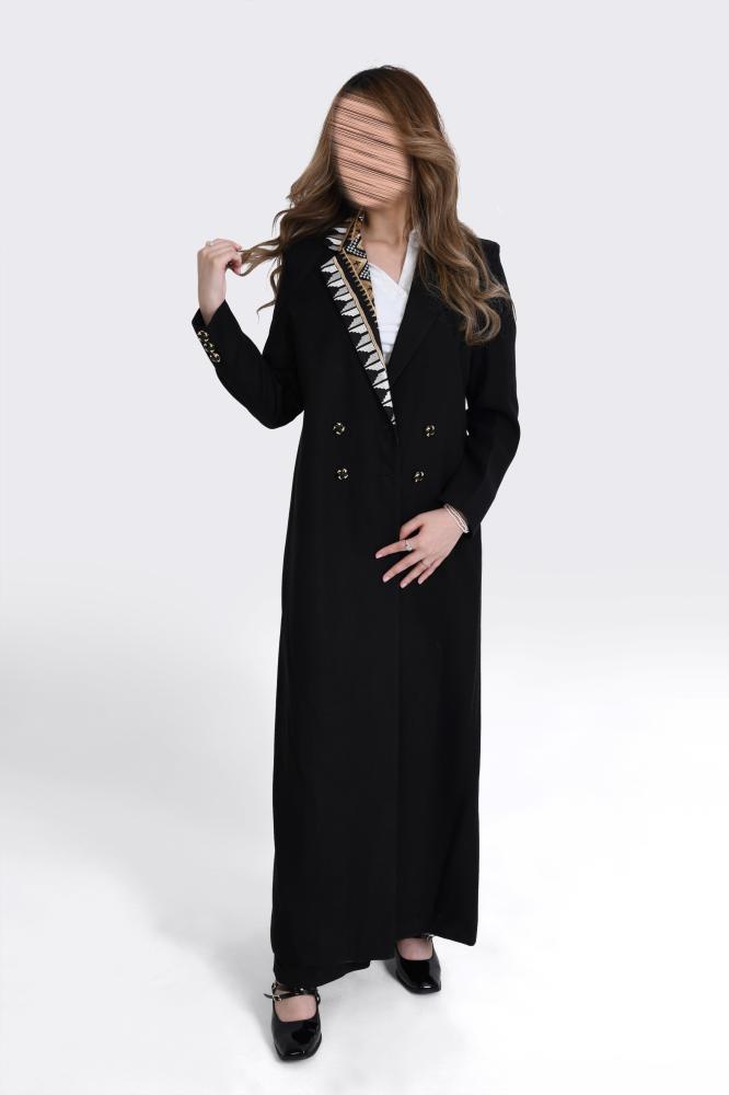عباية بليزر رسمية مع تطريز خاص باطراف اللياقة فقطالنوع: يوميالقماش: كريب فاخر قصه العبايا : استريتاللون: اسود
